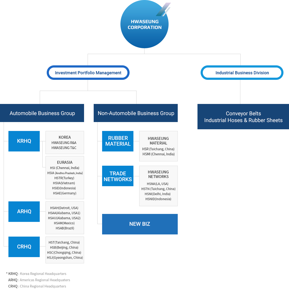 As the Global Headquarters (GHQ), Hwaseung Corporation performs key roles in global integration by leveraging its networks of worldwide subsidiaries in the automotive, high-tech materials, and international trade sectors.