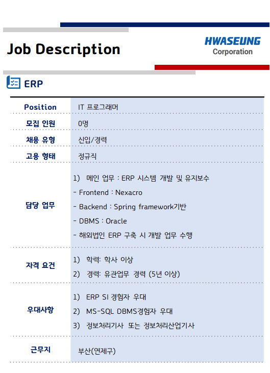[화승코퍼레이션] IT 경력직 채용