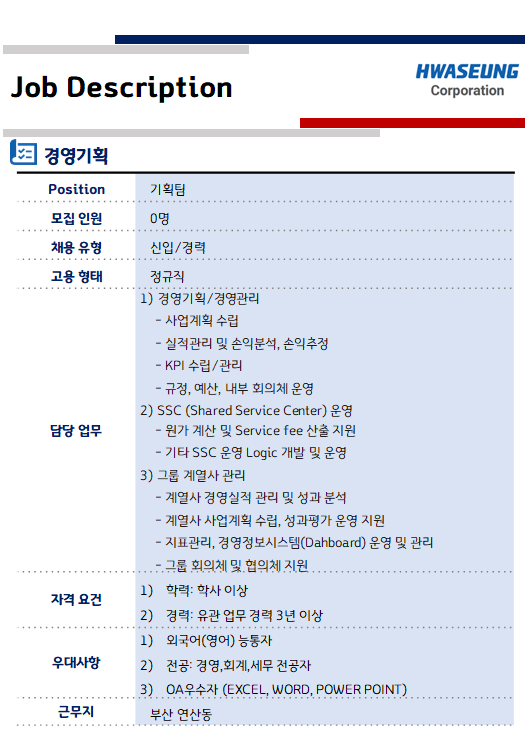 인재채용 채용공고 결과확인 [화승코퍼레이션] 기획 경력직 채용 채용회사 화승코퍼레이션 채용대상 경력 직무 베트남법인 - 영업관리 채용기간 2023-08-28 ~ 2023-09-10 목록