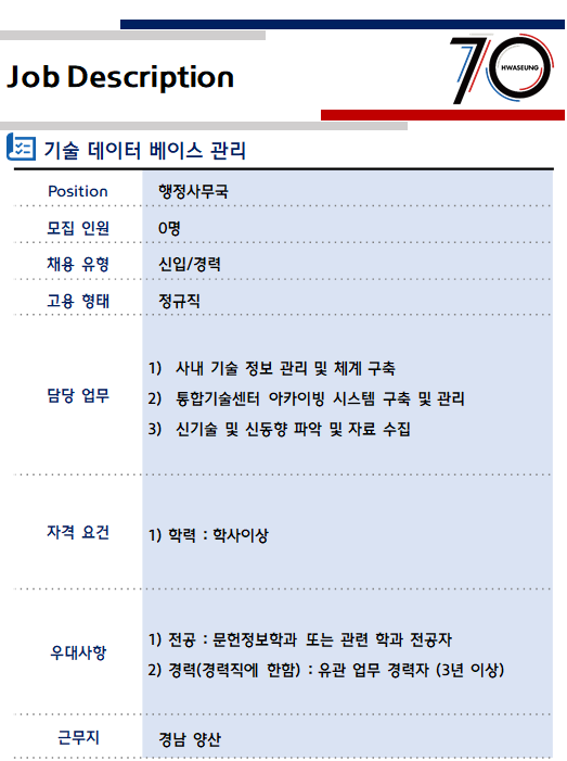 인재채용 채용공고 결과확인 [화승소재] 기술데이터베이스관리 분야 신입/경력직 채용(기간 연장) 채용회사 화승소재 채용대상 신입,경력 직무 사무보조(서울 여의도) 채용기간 2023-03-30 ~ 2023-04-16 ※ 본 수시채용의 타 계열 및 모집 부문 간 중복지원은 불가하며, 중복지원시 심사대상에서 제외될 수 있음을 유의하시기 바랍니다. 문의: HR팀 (051-717-7376) 목록